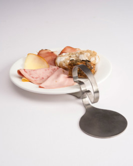 Designed as a breakfast tool for luxury hotels in Southtyrol. In german, "Frühstück" means breakfast and "froh" means happy. Born from the encounter of Italian and German cultures, FROHstück is the perfect tool to enjoy breakfast, combining sweet and salty foods without mixing the flavors. Made out of a unique piece of stainless steel, hygienic and resistant, the elegant and simple shape is designed to provide an ergonomic grip. FROHstück is a versatile object capable of adapting to any size of dishes.